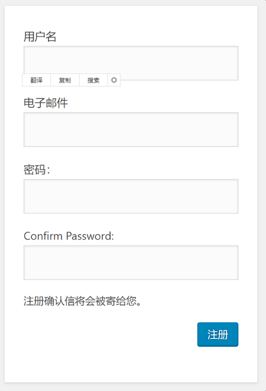 注意:默认注册的话,你需要先设置好邮件系统,参见文章:WordPress发送邮件的方法