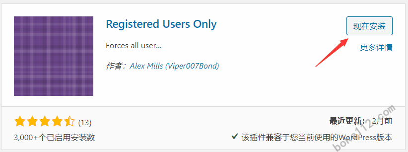 方法二:安装Registered Users Only插件,进入网站后台,点击插件,安装插件,输入Registered Users Only搜索插件,安装,启用即可。