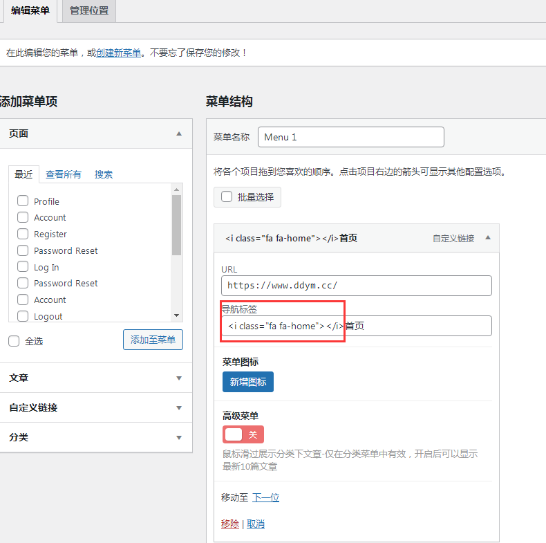 WordPress博客如何给导航前面添加图标图文教程