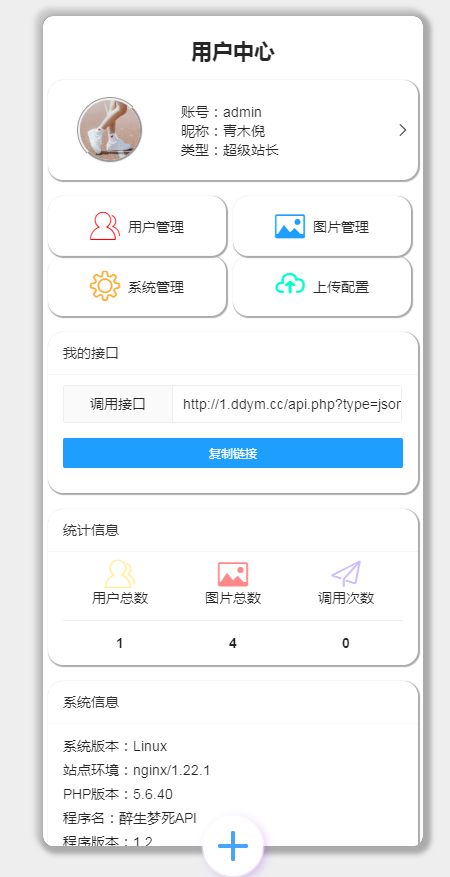 admin 图片源码 整站源码 网站源码 2022-12-23 青木倪图片API系统源码V1.2版 带用户中心带管理后台 VIP视频解析 小姐姐短视频 九8k个人导航 招广告位 广告位 广告位 广告位 广告位 广告位 广告位 广告位 广告位 广告位 广告位 广告位 广告位 使用方法: ①:将源码上传至虚拟机或者服务器 解压到网站目录 ②:访问首页域名即可使用 访问域名即可按提示一步一步安装,如果不行的话就在你的域名后面加/install再访问即可按提示安装,一键安装,很简单。 图床 图片 本站所有源码来自于全网络收集仅供技术人员学习参考研究,严禁非法用途与本站无关 多多源码 » 青木倪图片API系统源码V1.2版 带用户中心带管理后台 VIP视频解析 小姐姐短视频 九8k个人导航 招广告位 广告位 广告位 广告位 广告位 广告位 广告位 广告位 广告位 广告位 广告位 广告位 广告位