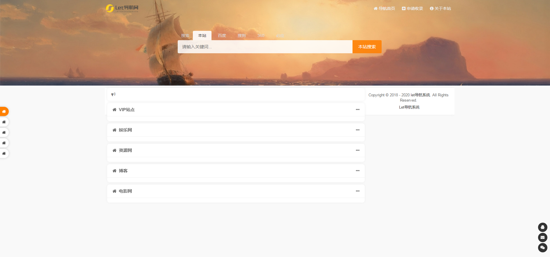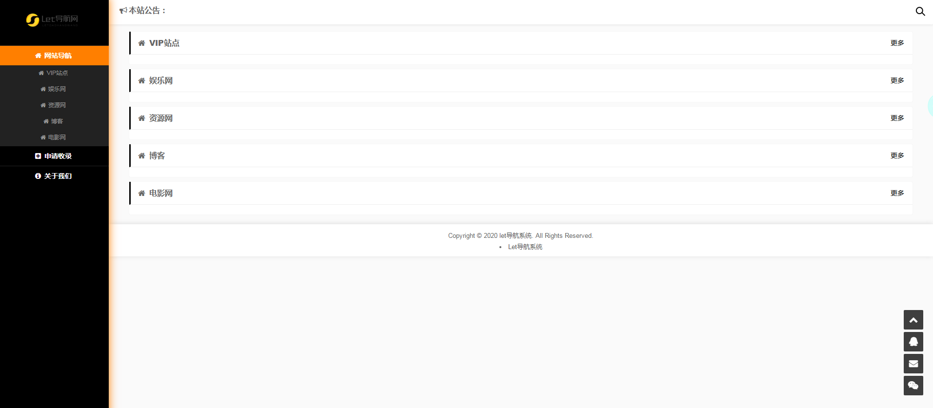 admin 导航源码 整站源码 网站源码 2022-12-27 Let导航源码系统一键安装 两套模板 带后台管理 VIP视频解析 小姐姐短视频 九8k个人导航 招广告位 广告位 广告位 广告位 广告位 广告位 广告位 广告位 广告位 广告位 广告位 广告位 广告位 使用方法: ①:将源码上传至服务器 解压到网站目录 ②:访问域名即可安提示安装,一键安装,方便简单,或者访问你的域名+/install安提示安装。 个人导航 引导页 本站所有源码来自于全网络收集仅供技术人员学习参考研究,严禁非法用途与本站无关 多多源码 » Let导航源码系统一键安装 两套模板 带后台管理 VIP视频解析 小姐姐短视频 九8k个人导航 招广告位 广告位 广告位 广告位 广告位 广告位 广告位 广告位 广告位 广告位 广告位 广告位 广告位