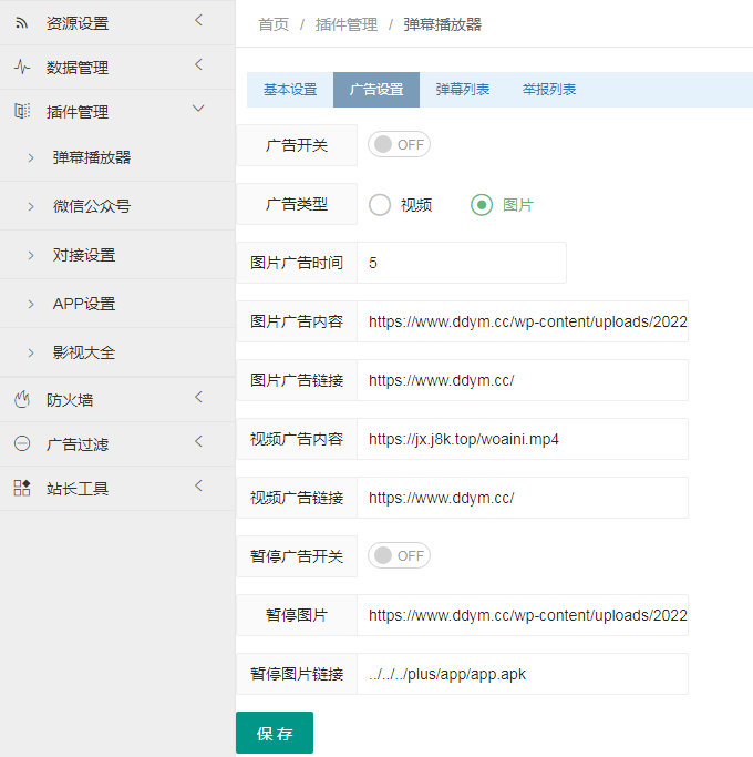 4:自带弹幕播放器,可设置自己需要的图片广告和视频广告。