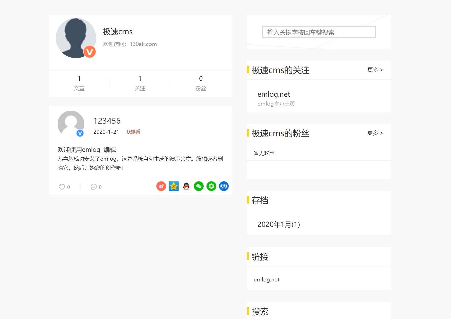 仿秒拍emlog模板 论坛源码